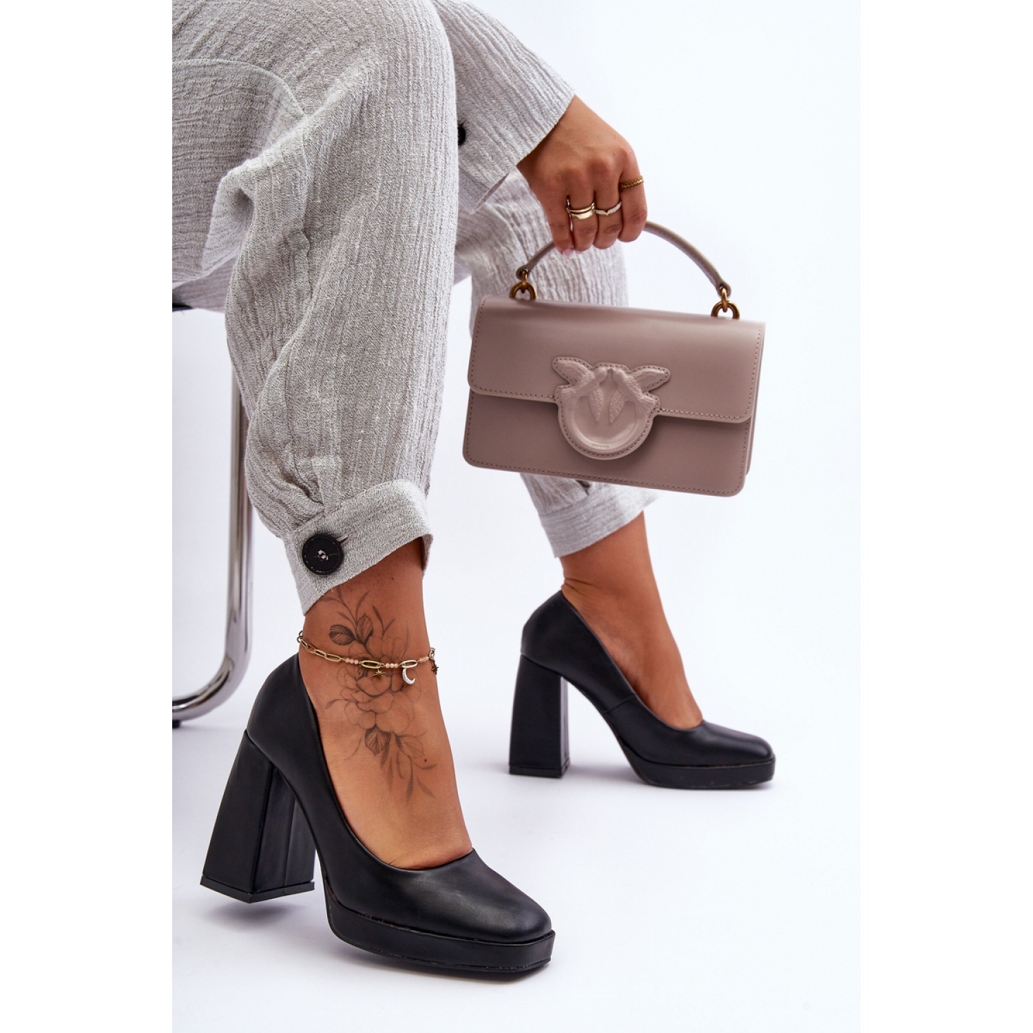 Pompele unice sunt din piele ecologică. Au călcâiul rigid. Un toc stabil sub forma unui bloc mai inalt si o platforma delicata iti vor asigura confortul. Pompele au un vârf pătrat la modă. Pompele sunt grozave pentru multe ocazii, de exemplu pentru serviciu, pentru o petrecere sau întâlniri importante.