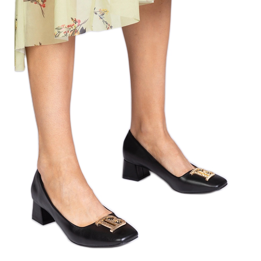 Detalii: Pompe negre cu degetele joase cu o decorare aurii negru