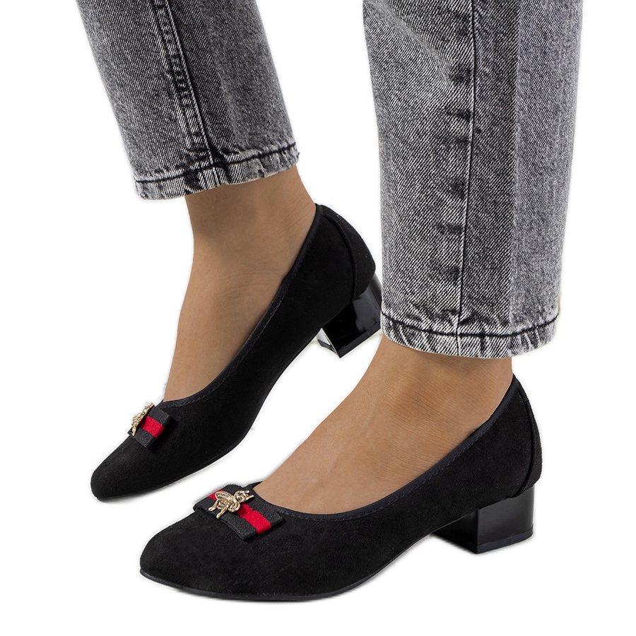 Pompe negre Vijver cu o muscă decorativă - eleganță cu un indiciu de stil
