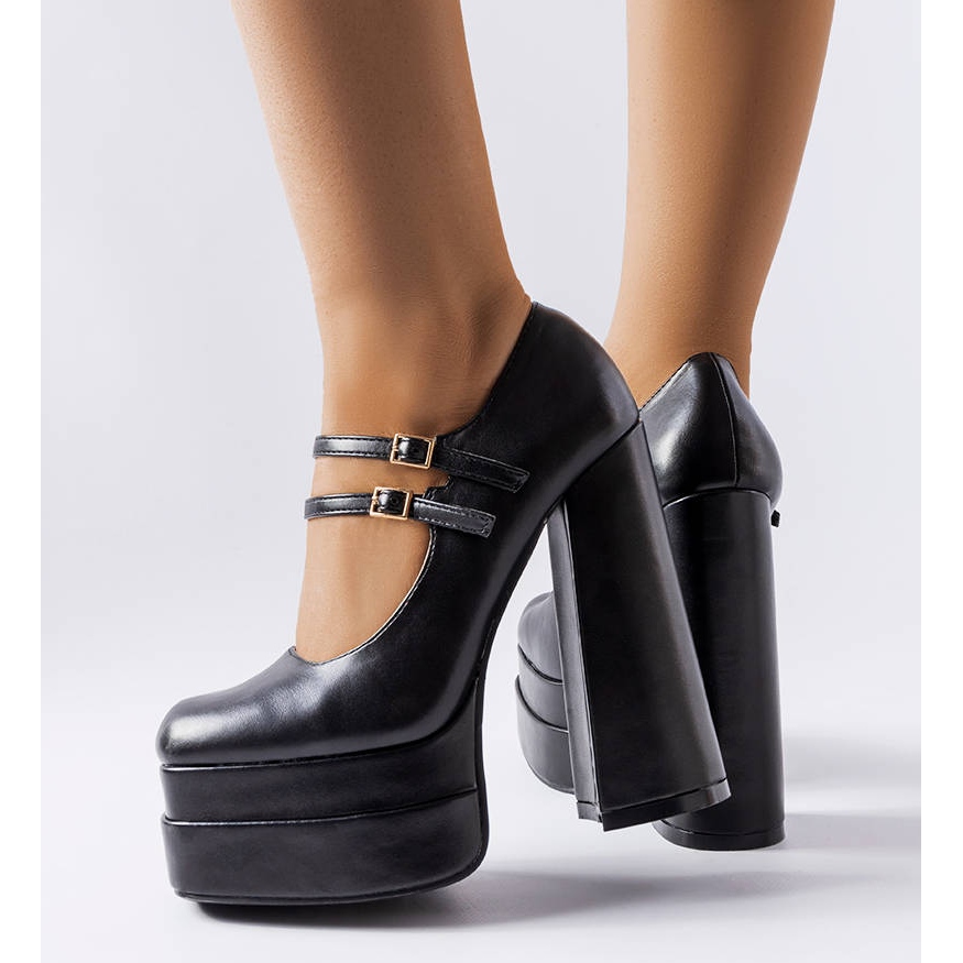 Aceste pompe exclusive sunt fabricate din piele ecologică de înaltă calitate, ceea ce le subliniază caracterul luxos și grija pentru mediu. Originalitatea acestui produs este subliniată de vârful pătrat, ușor rotunjit, care conferă pantofilor un aspect modern.