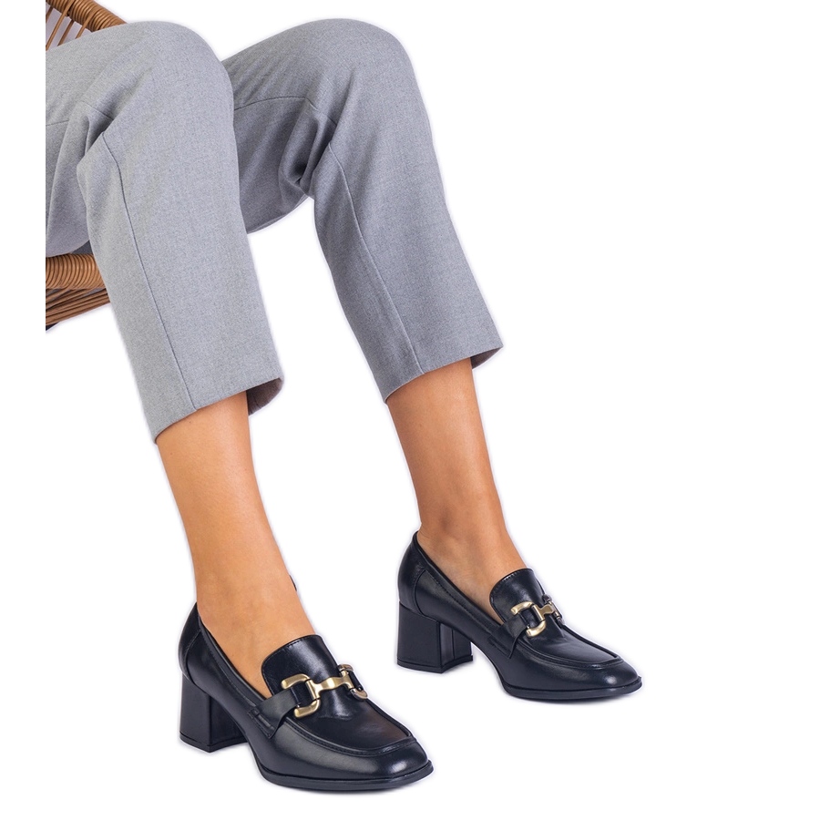 Detalii: Pompe negre pe post cu o decorare metalică negru