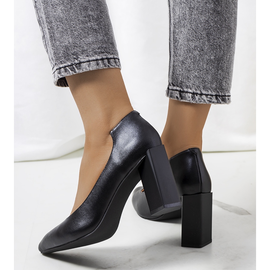 Pompele negre cu toc Kruis sunt alegerea perfectă pentru fiecare femeie care vrea să îmbine eleganța cu confortul. Datorită tăieturii lor unice și formei originale a tocului, acești pantofi ies în evidență față de alte modele. Înălțimea tocului de 8,5 cm face silueta mai subțire, iar în același timp, stabilitatea pe călcâi asigură încredere în fiecare pas.