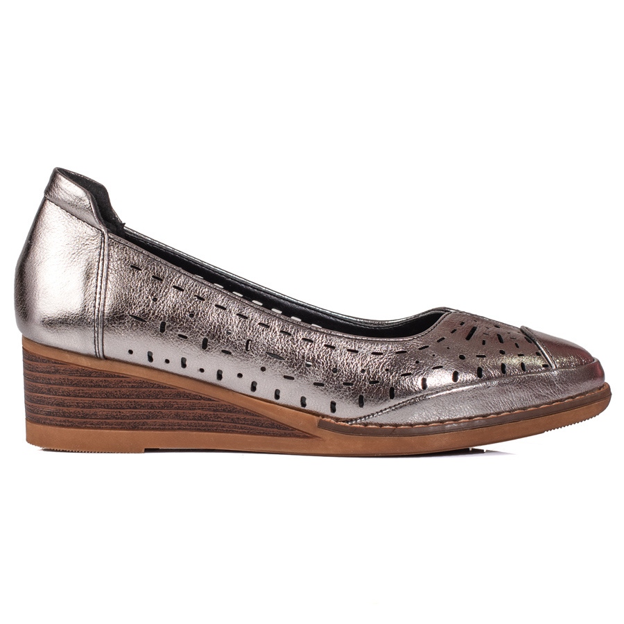 Fabricate din materiale de înaltă calitate, pompele se caracterizează printr-o talpă sintetică cu benzi de rulare, care asigură aderență solidă și confort de utilizare. Designul special cu model ajurat și vârf rotund adaugă lejeritate și farmec feminin. În plus, branțul din piele naturală garantează confort chiar și atunci când este purtat pentru perioade lungi de timp.