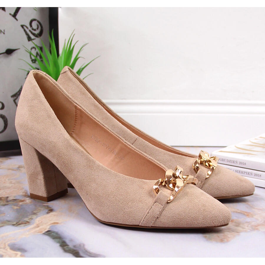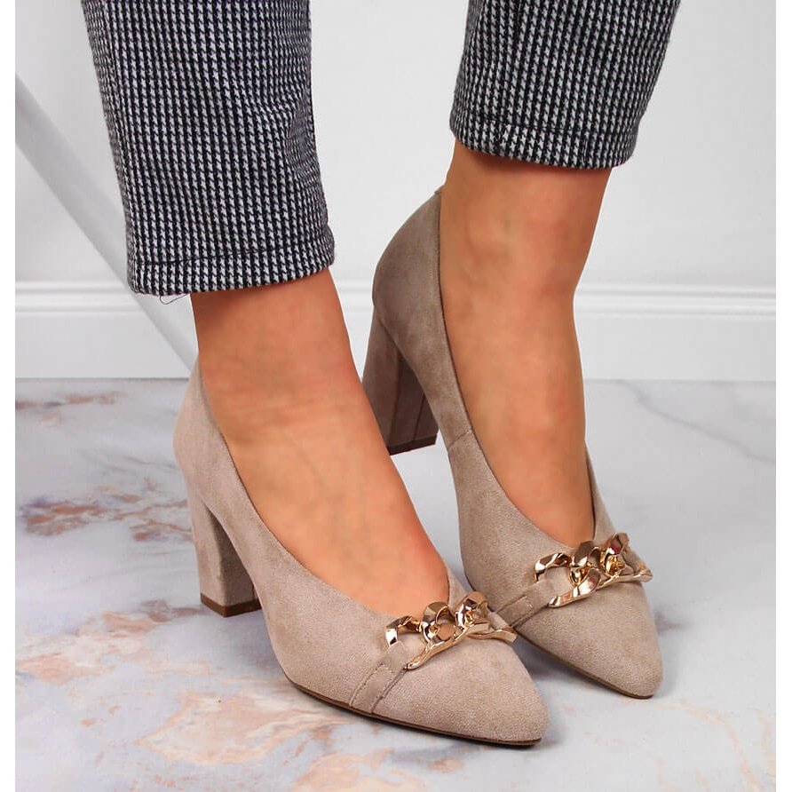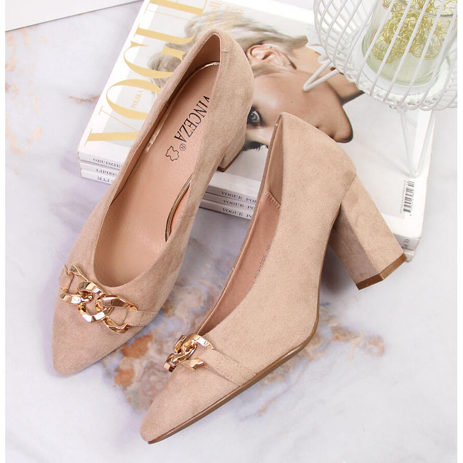 Detalii: Pompe pe pilon de piele intoarsa cu un lant Bej Vinceza