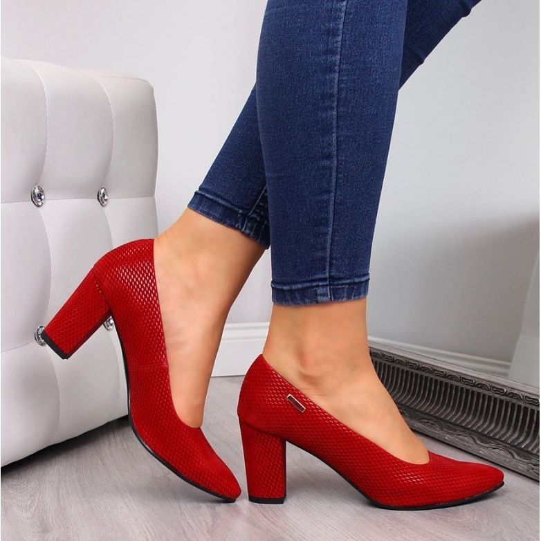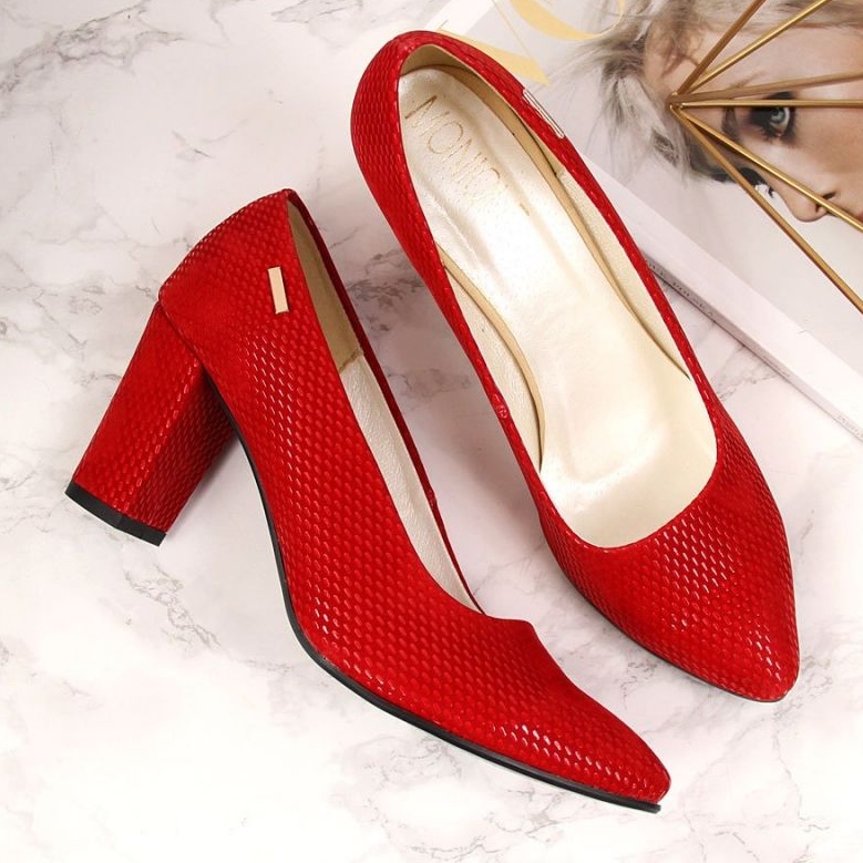 Pompe pe post în Monique An866B - Roșu, elegant și confortabil. Tăierea clasică pe o postare stabilă, de 8 cm, vă va oferi încredere și vă va sublinia optic figura, iar culoarea roșie intensă va face ca fiecare stilizare să fie un accent distinct.