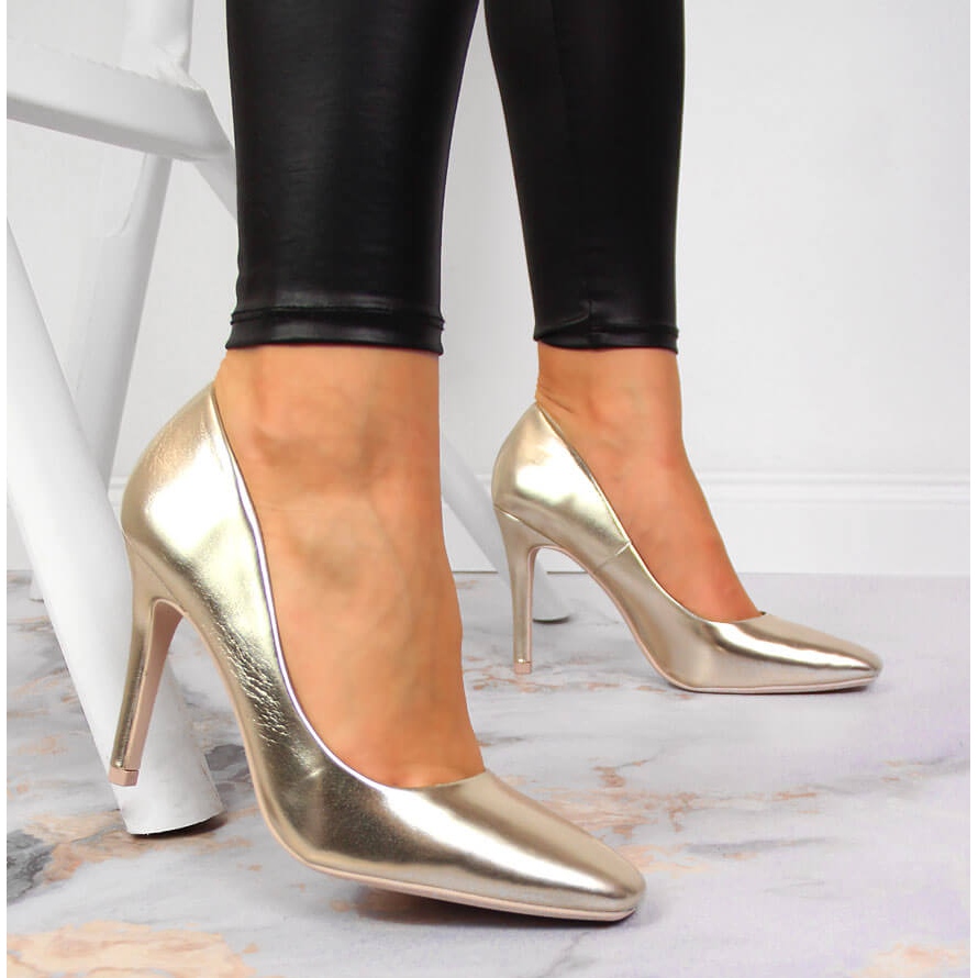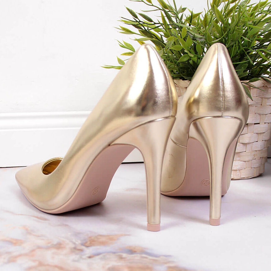 Pompele aurii reflectă cele mai recente tendințe și se potrivesc perfect stilurilor casual și formale. Datorită tocului de 10 cm înălțime, fiecare dintre siluetele tale va căpăta un ton elegant, iar vârful pătrat le conferă un caracter modern. Materialul tălpii este sintetic, ceea ce garantează stabilitate și durabilitate, iar închiderea cu alunecare le face extrem de ușor de pus.