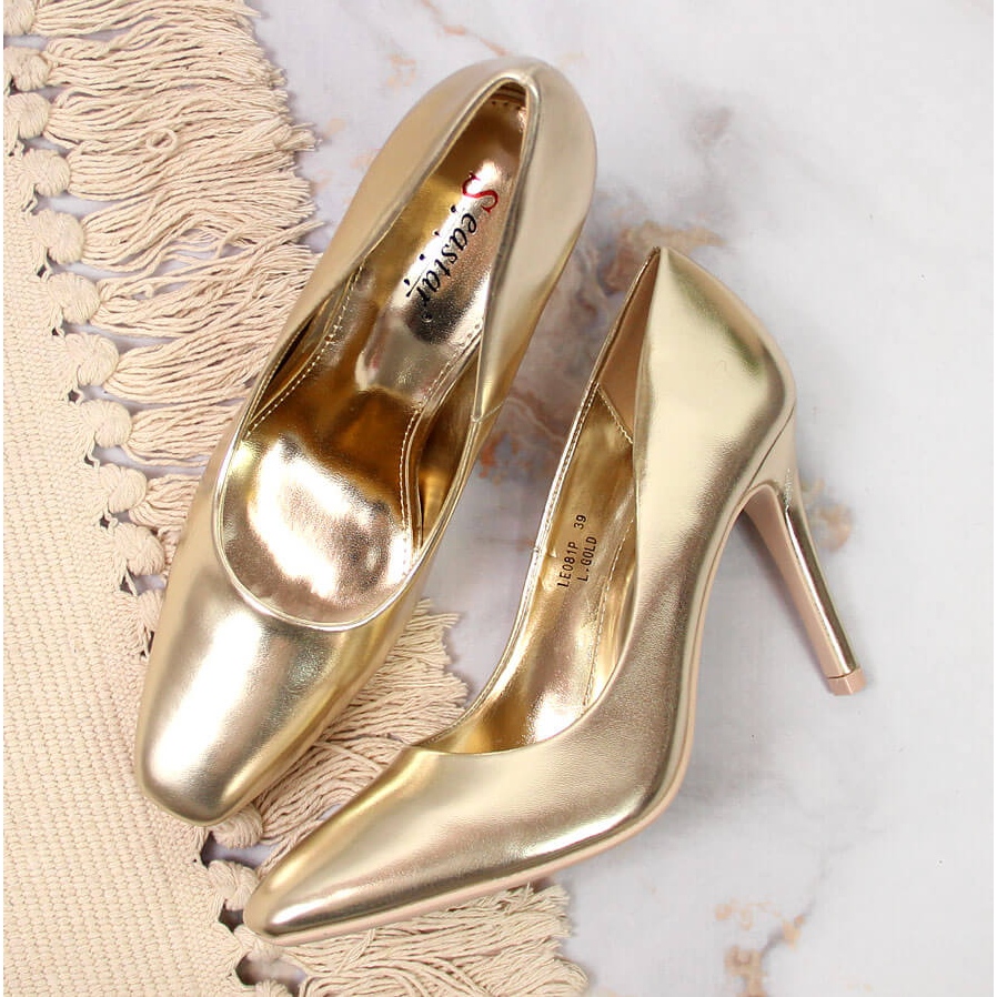 Pompele stiletto aurii de la brandul Seastar sunt alegerea perfectă pentru femeile care doresc să adauge un vârf de eleganță și strălucire stilului lor. Fabricate din piele ecologică de înaltă calitate, atât partea superioară, cât și branțul asigură confortul la purtare pe tot parcursul zilei. Acești pantofi stilați nu numai că vor pune în valoare calitățile tale feminine, dar vor face și fiecare moment unic.