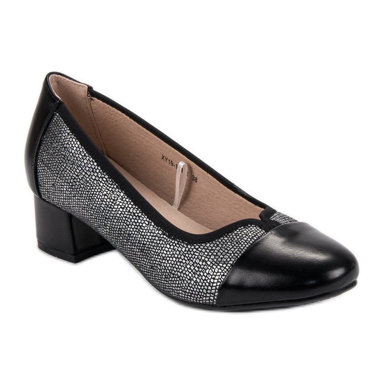 Detalii: Pompe pe tocul plat VINCEZA negru gri