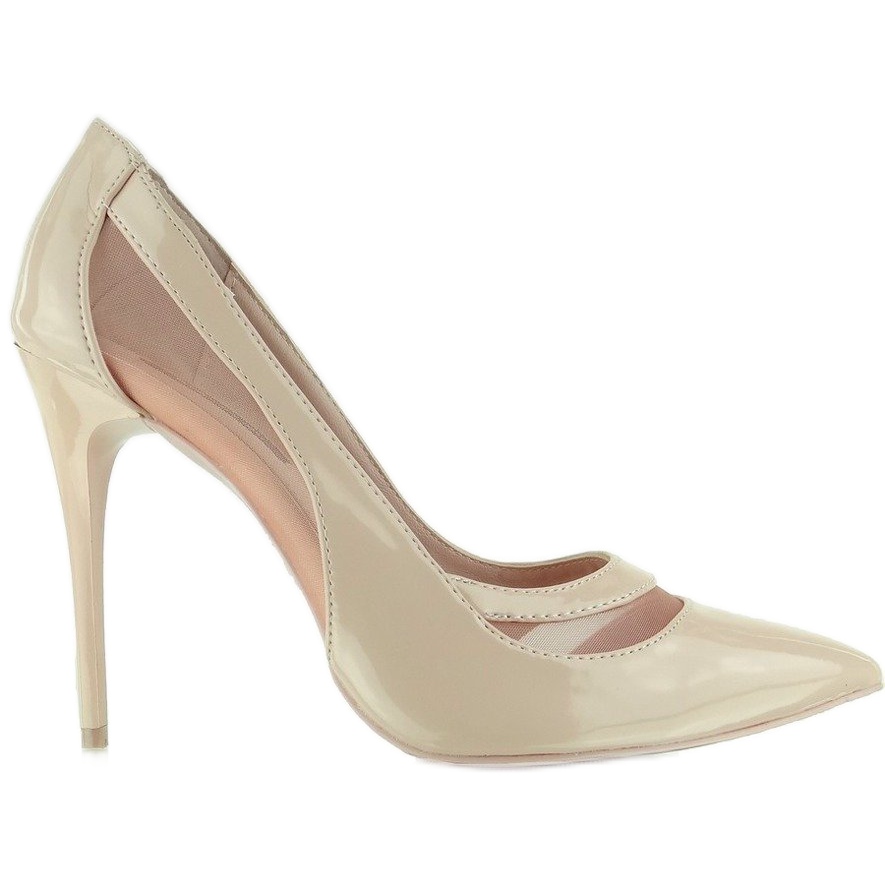 Realizați din piele ecologică de înaltă calitate, pantofii se caracterizează printr-o suprafață lăcuită care reflectă lumina, oferindu-le un aspect luxos. Un accent interesant sunt inserțiile din plasă care dezvăluie senzual piciorul, creând o compoziție subtilă și intrigantă.