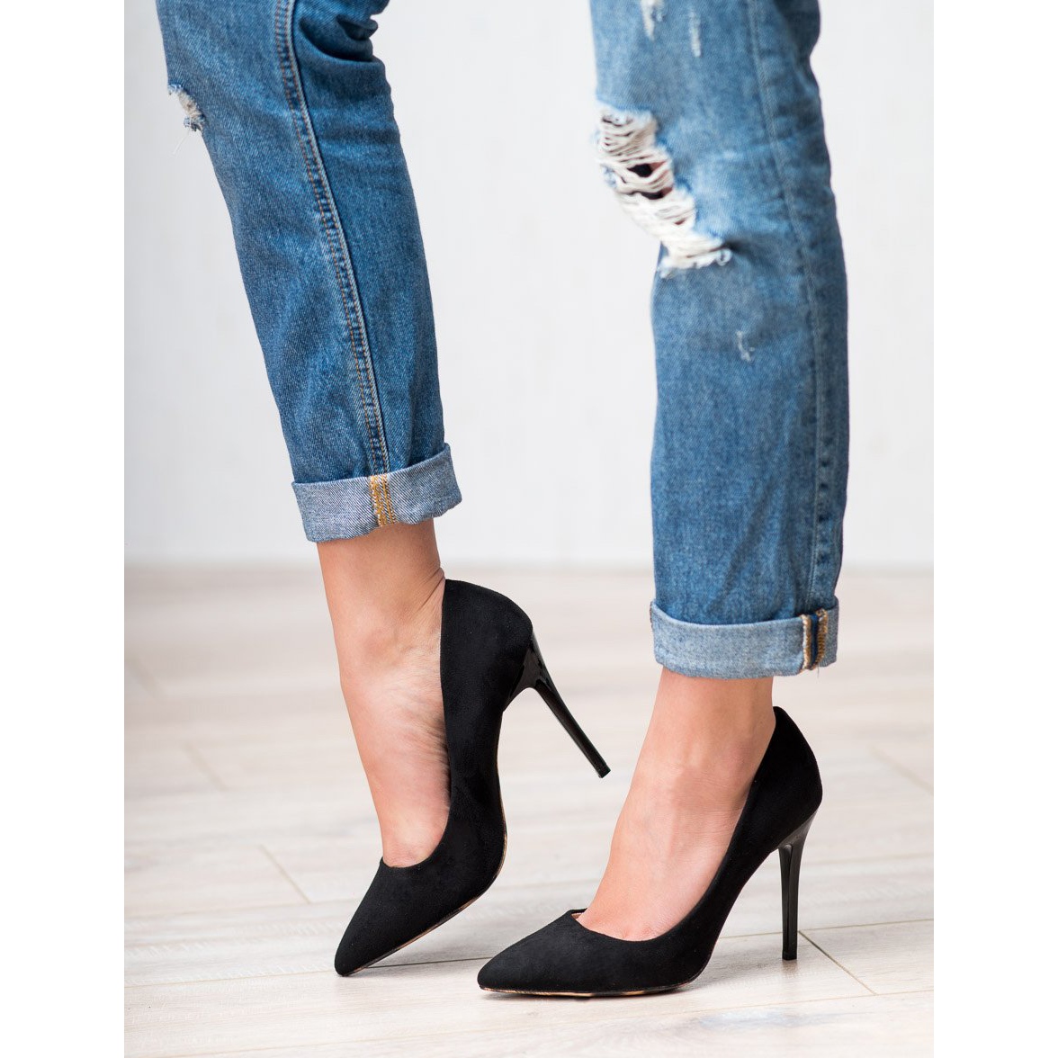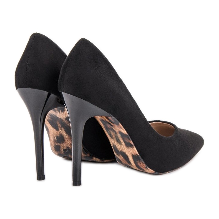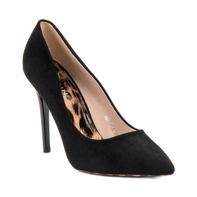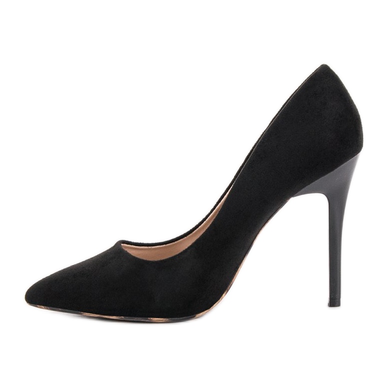 Pompele cu toc înalt de la Erynn sunt chintesența eleganței și a feminității. Confecționați din piele ecologică de înaltă calitate, care imit piele de căprioară, acești pantofi negri clasici sunt alegerea perfectă pentru ocaziile speciale. Degetul lor conic și talpa profilată se adaptează perfect formei piciorului, asigurând confortul la purtare.