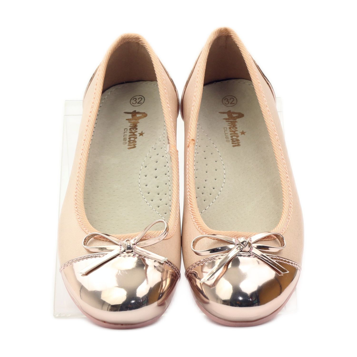 Descoperă pantofii de balerină fermecătoare de la American Club care cu siguranță vor încânta fiecare doamnă! Modelul wz.14297 se remarca printr-o combinatie unica de culori: roz pudrat, auriu si alb, ceea ce le face perfecte pentru diverse ocazii.