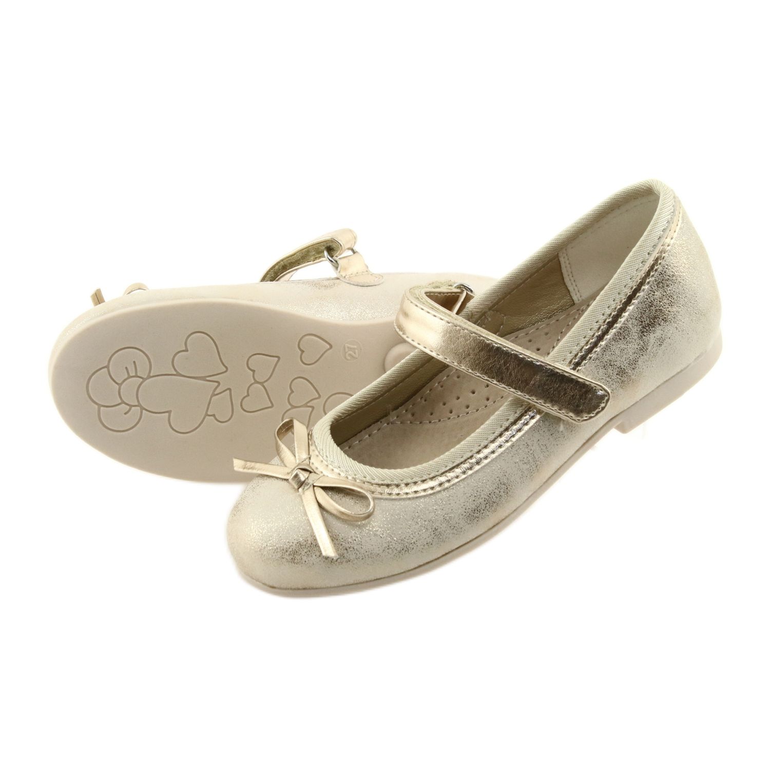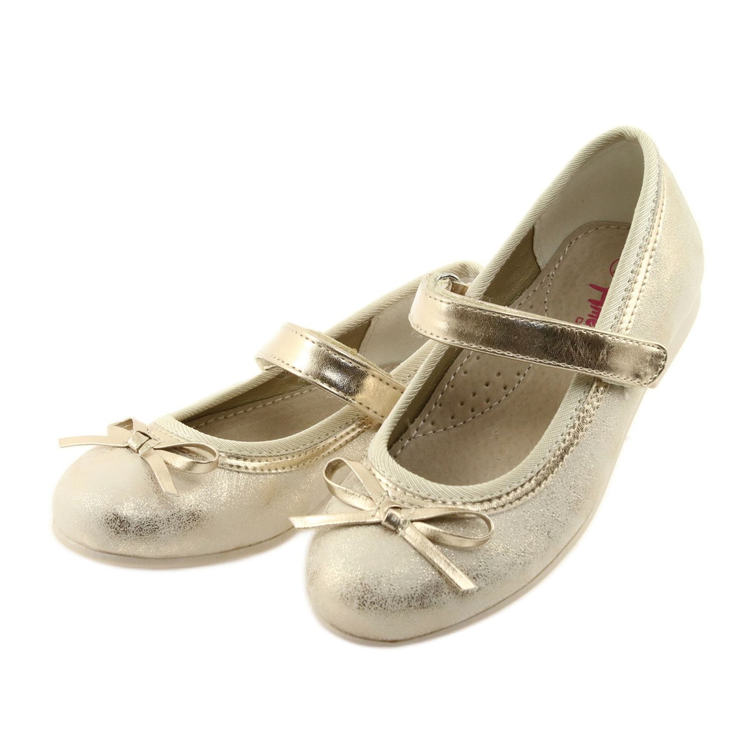 Balerinii American Club GC18 cu fundita sunt alegerea perfecta pentru fetitele elegante! Confectionati din piele ecologica intr-o frumoasa culoare bej placat cu aur, cu un accent suplimentar sub forma unei fundite aurii, acesti pantofi imbina stilul si confortul.