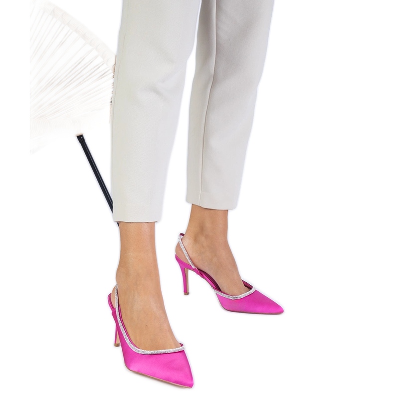 Inna marka Pompe roz din satin cu zirconi cu călcâi deschis