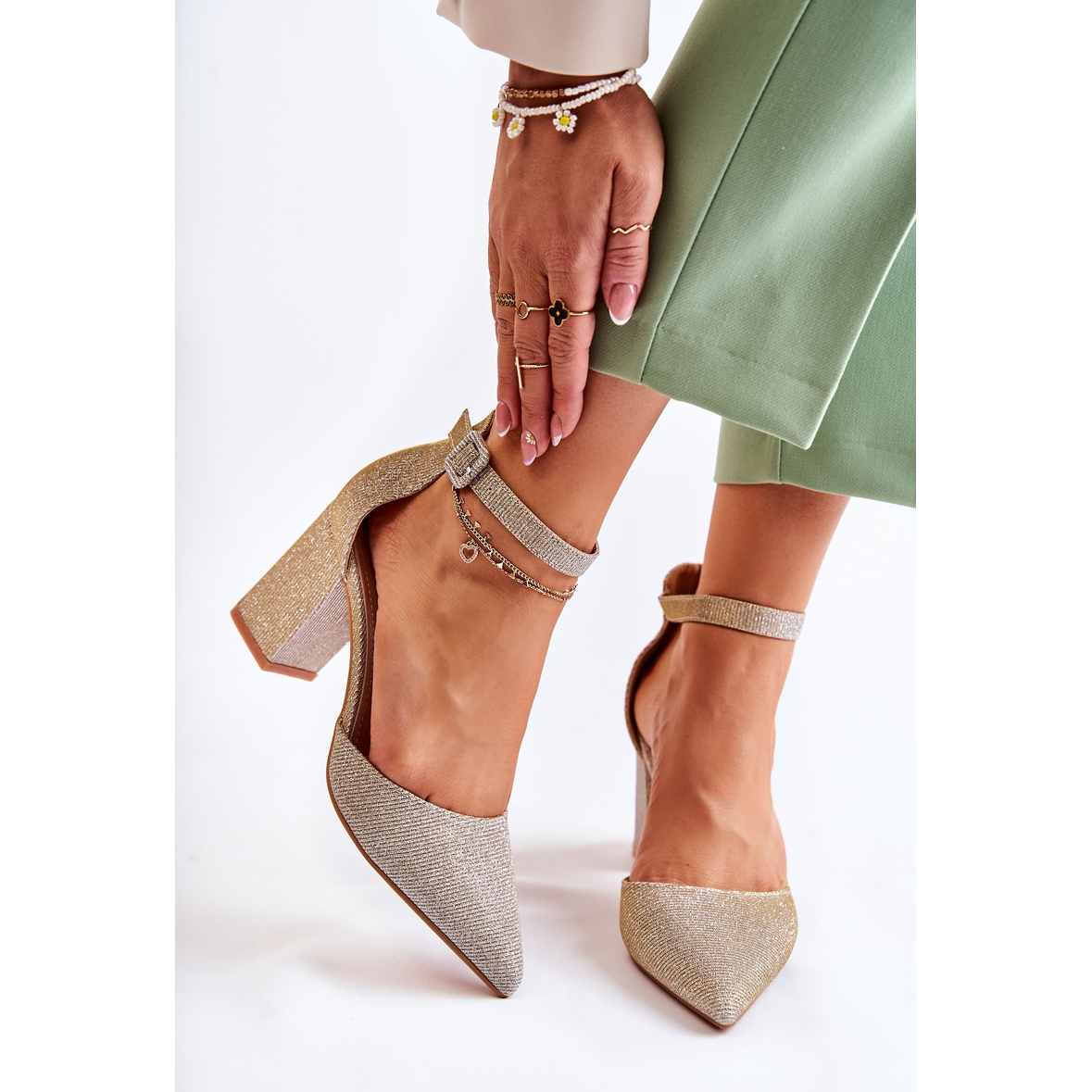 Va prezentam pantofii extraordinari cu toc de la WS1 intr-o culoare eleganta aurie - modelul Amira. Acești pantofi impresionanți îmbină perfect stilul cu confortul, datorită unui toc stabil și a unei închideri cu cataramă reglabilă, care îi face să se potrivească perfect piciorului.
