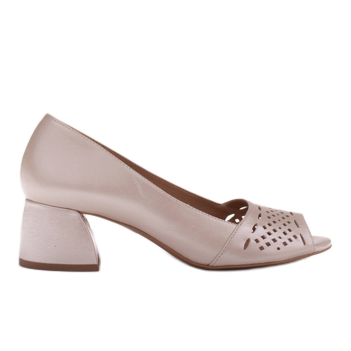Utilizarea de piele naturală granulată în structura exterioară a pantofului asigură nu numai un aspect frumos, ci și o utilizare de lungă durată. Culoarea aurie a pompelor adaugă prestigiu și este atât de universală încât se potrivește cu multe stiluri și culori. Datorită inserțiilor din piele, confortul la purtare este la cel mai înalt nivel și picioarele tale se pot simți confortabil toată ziua.