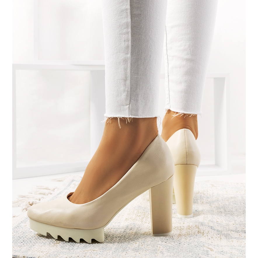 Confectionati din piele ecologica intr-o culoare bej la moda, pantofii nu numai ca arata elegant, ci sunt si ecologici. O platformă înaltă, cu o talpă sintetică cu o banda de rulare groasă oferă confort și siguranță suplimentară, iar închiderea cu alunecare facilitează încălțarea și scoaterea pantofilor.