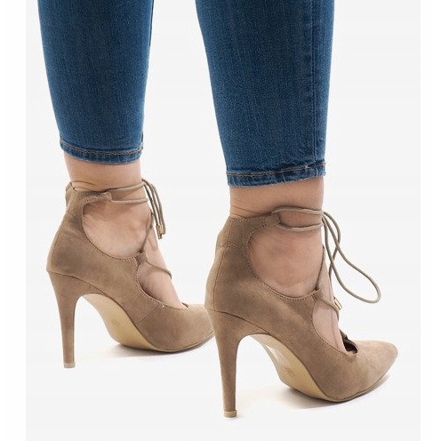 Închiderea cu dantelă le oferă un aspect modern și face ca pompele să se potrivească perfect pe picior. Înălțimea tocului de 10 cm oferă un efect impresionant de alungire a picioarelor, ceea ce face ca silueta să pară mai subțire. În plus, culoarea lor bej neutru le permite să fie asortate cu ușurință la diverse stiluri - atât elegante, cât și casual.