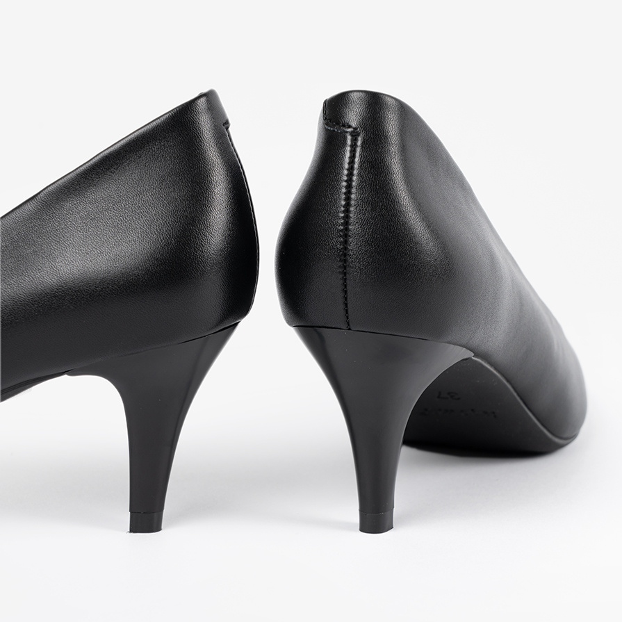 Pompele sunt caracterizate printr -un nas rotund care oferă confort. Construit -călcâiul și un stil elegant de 6,5 cm înalt, ceea ce le face perfecte atât zilnic, cât și pentru ocazii speciale. Culorile negre clasice compun o stilizări diferite, ceea ce le face o alegere universală.