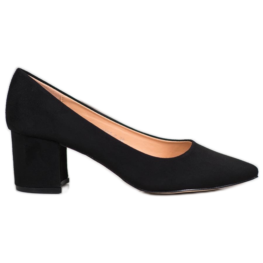 Pompele au un toc bloc stabil de 6 cm inaltime, ceea ce ii face extrem de confortabili, chiar si atunci cand mergi mult timp. Confecționați din piele ecologică cu finisaj de piele de căprioară, acești pantofi combină eleganța cu o abordare ecologică. Varful ascutit le ofera un caracter modern, iar inchiderea cu slip-on le face extrem de usor de pus si scos.