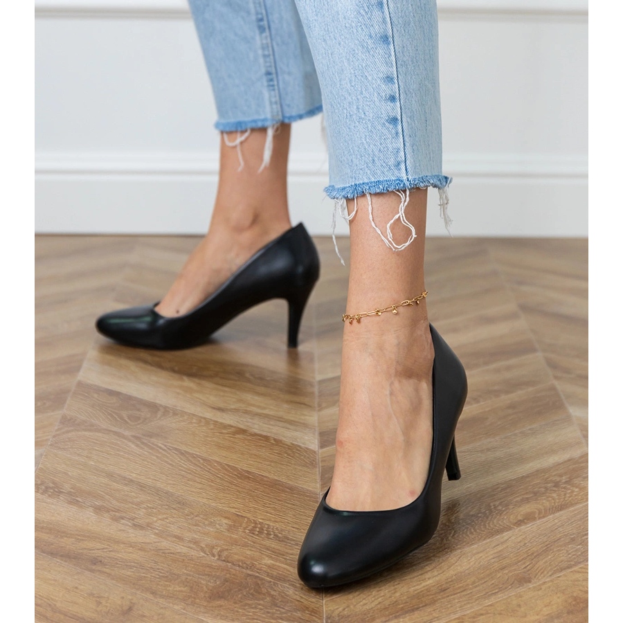 Pompele clasice FB-300 clasice ale femeilor negre sunt o propunere excelentă pentru femeile care apreciază eleganța și confortul. Acești pantofi clasici sunt din piele ecologică de înaltă calitate, ceea ce le oferă durabilitate și ușurință de îngrijire. Culoarea neagră le face un element universal al garderobei, ideal pentru diverse ocazii - de la întâlniri casual la evenimente mai formale.