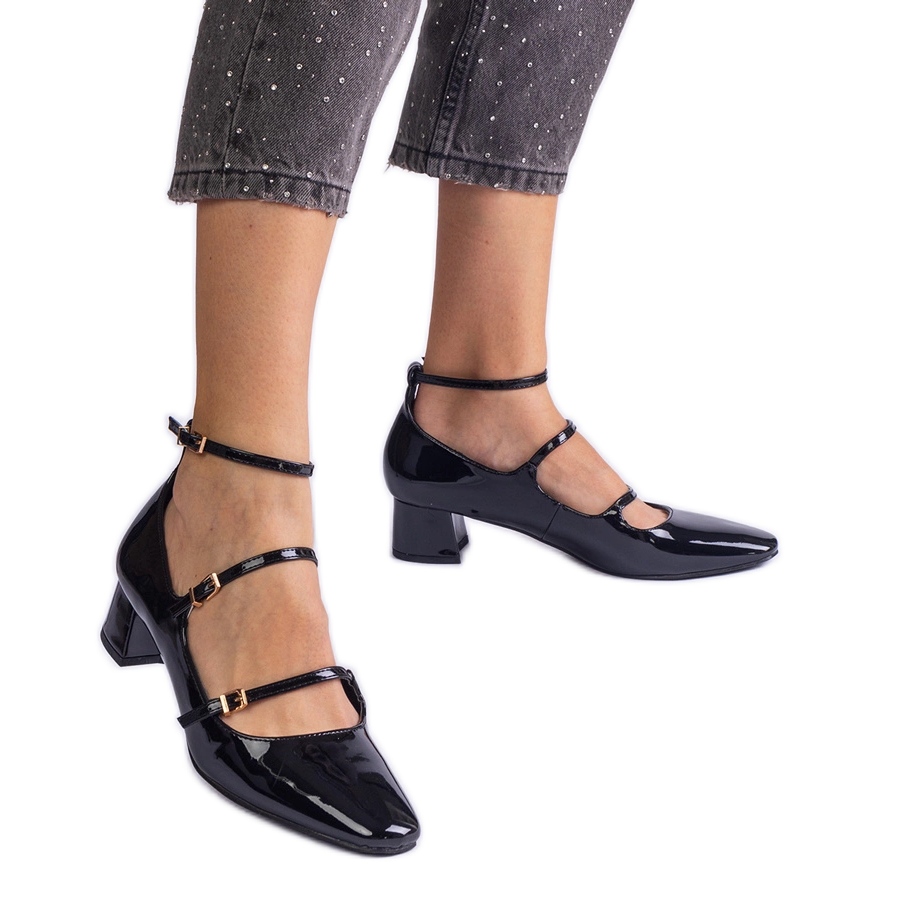 Detalii: Pompele negre lăcuite cu o centură negru