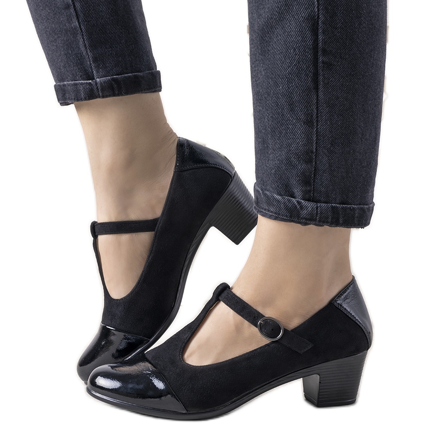 Culoarea clasică neagră a acestor pantofi se potrivește perfect cu diverse stiluri, atât pentru utilizarea de zi cu zi, cât și pentru ocazii mai formale. Nasul rotund și lipsa modelelor fac pompele atemporale și mereu în vârf. În plus, catarama asigură o potrivire sigură.
