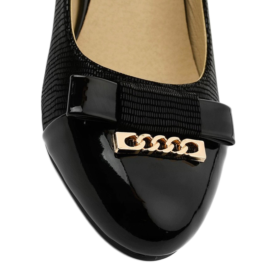 Pompele au un vârf rotund unic și un finisaj lăcuit care le adaugă subtilitate și clasă. Stâlpul de 5,5 cm înălțime asigură stabilitate și confort la purtare, astfel încât să te poți bucura de ele toată ziua. Un avantaj suplimentar este fundita, care conferă pantofilor un caracter delicat.