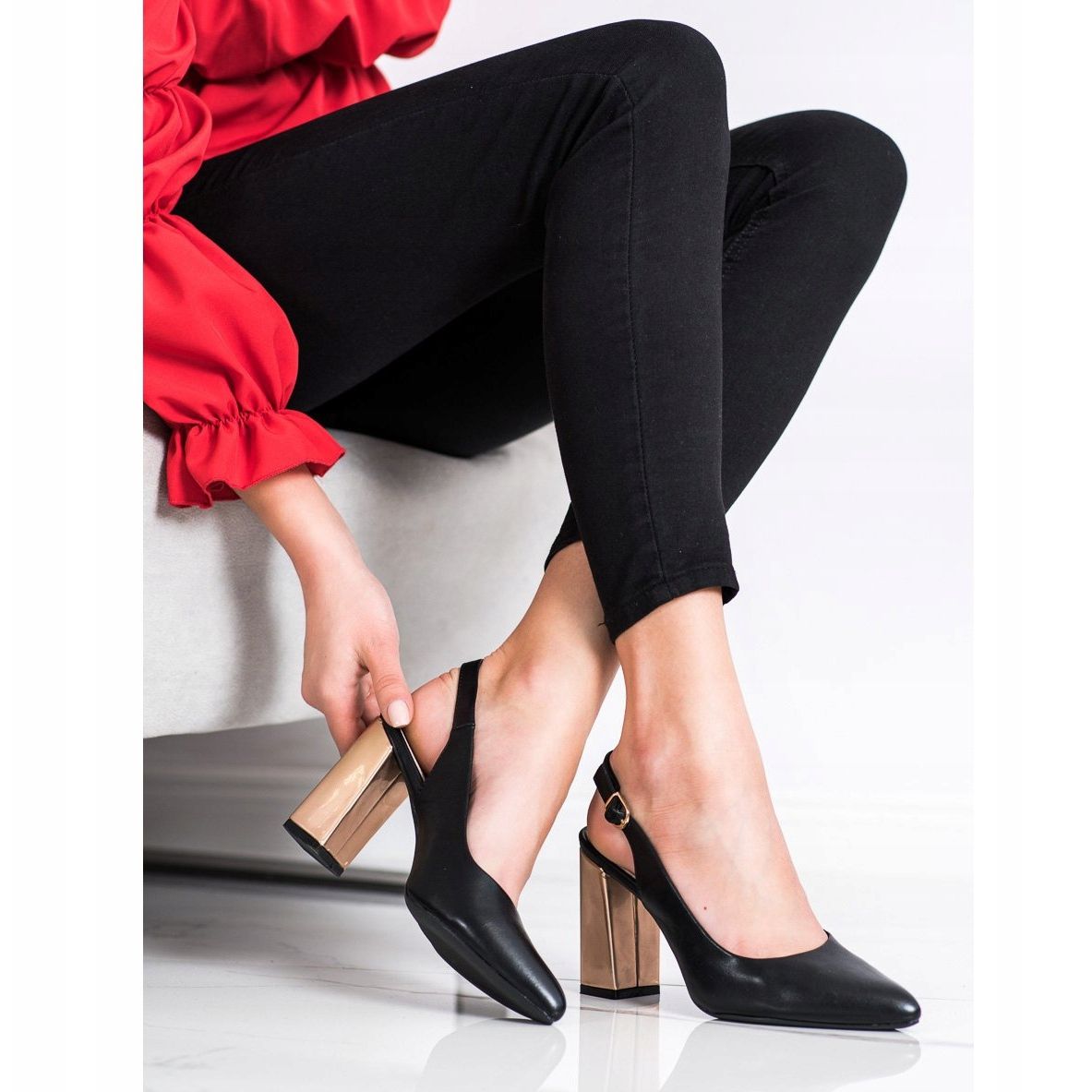 Tocul înalt, auriu, de 9,5 centimetri, nu numai că dă un plus de eleganță, dar și optic lungește picioarele. În plus, catarama plasată deasupra gleznei este un accent practic și elegant, care asigură o potrivire adecvată. Pompele au o talpă călcată din plastic, care garantează confort și stabilitate în timpul mersului.
