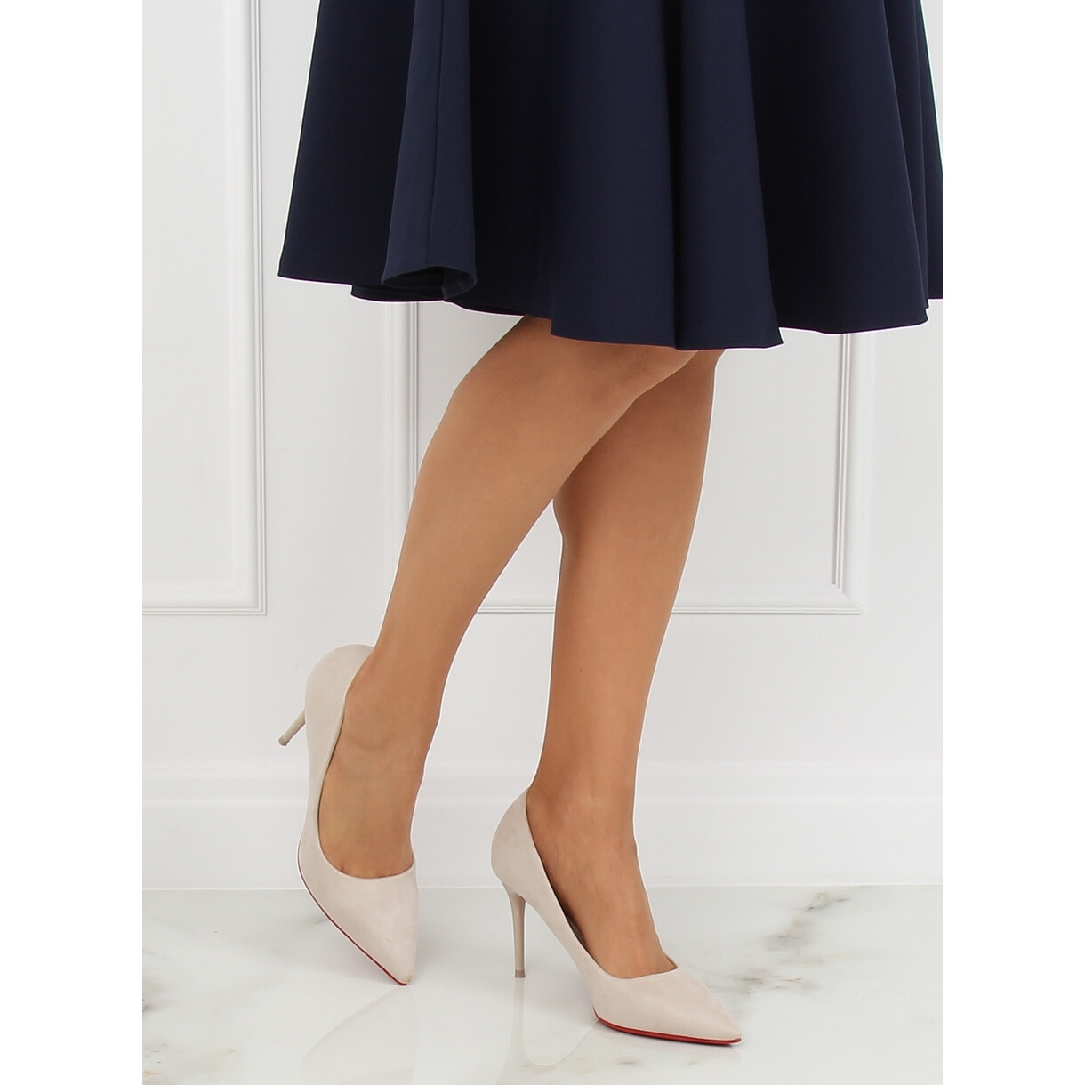 Pompele cu toc înalt E22369 în bej sunt o alegere perfectă pentru femeile care doresc să îmbine eleganța cu un pic de extravaganță. Un stiletto înalt de 9,5 cm adaugă o silueta subțire, iar talpa roșie contrastantă oferă un accent atrăgător care cu siguranță va atrage atenția.