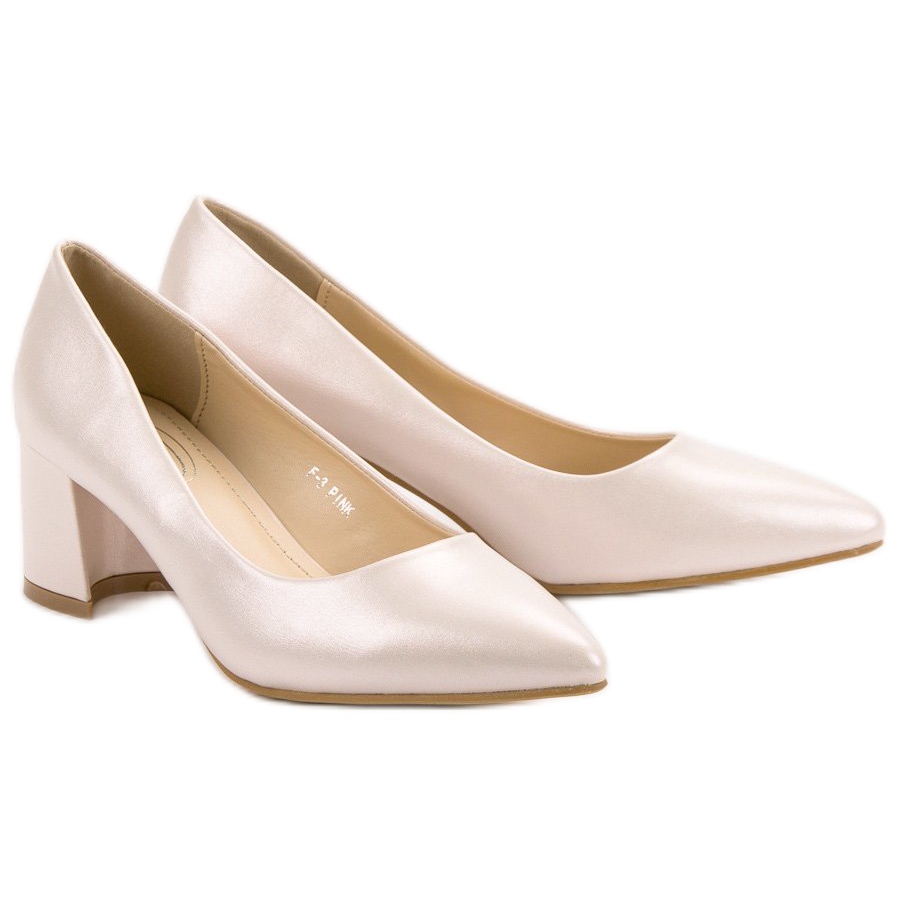 Descoperiți pantofii unici cu toc înalt în nuanțe frumoase de maro și roz. Acești pantofi eleganți sunt o alegere perfectă pentru fiecare femeie care dorește să îmbine stilul cu confortul. Degetul ascuțit nu numai că subțiază silueta picioarelor, ci se încadrează și în ultimele tendințe de modă. Datorită unui toc lat și stabil de 5,5 cm înălțime, acești pantofi sunt o alternativă dovedită la tocurile înalte tradiționale.