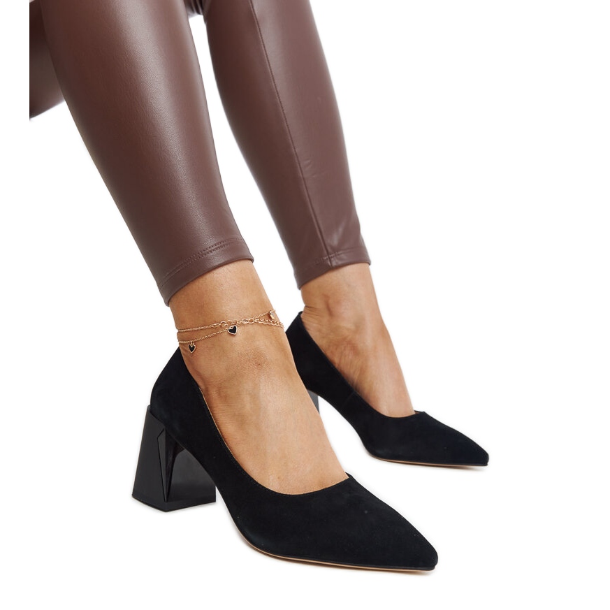 Pompele sunt confecționate din piele de căprioară naturală de înaltă calitate, care se încadrează perfect în ultimele tendințe. Culorile negre clasice le fac să se potrivească cu multe stiluri, de la rochii elegante la seturi casual cu blugi. În plus, inserția de piele garantează confortul toată ziua, iar o talpă solidă din plastic asigură durabilitatea și aderența bună.
