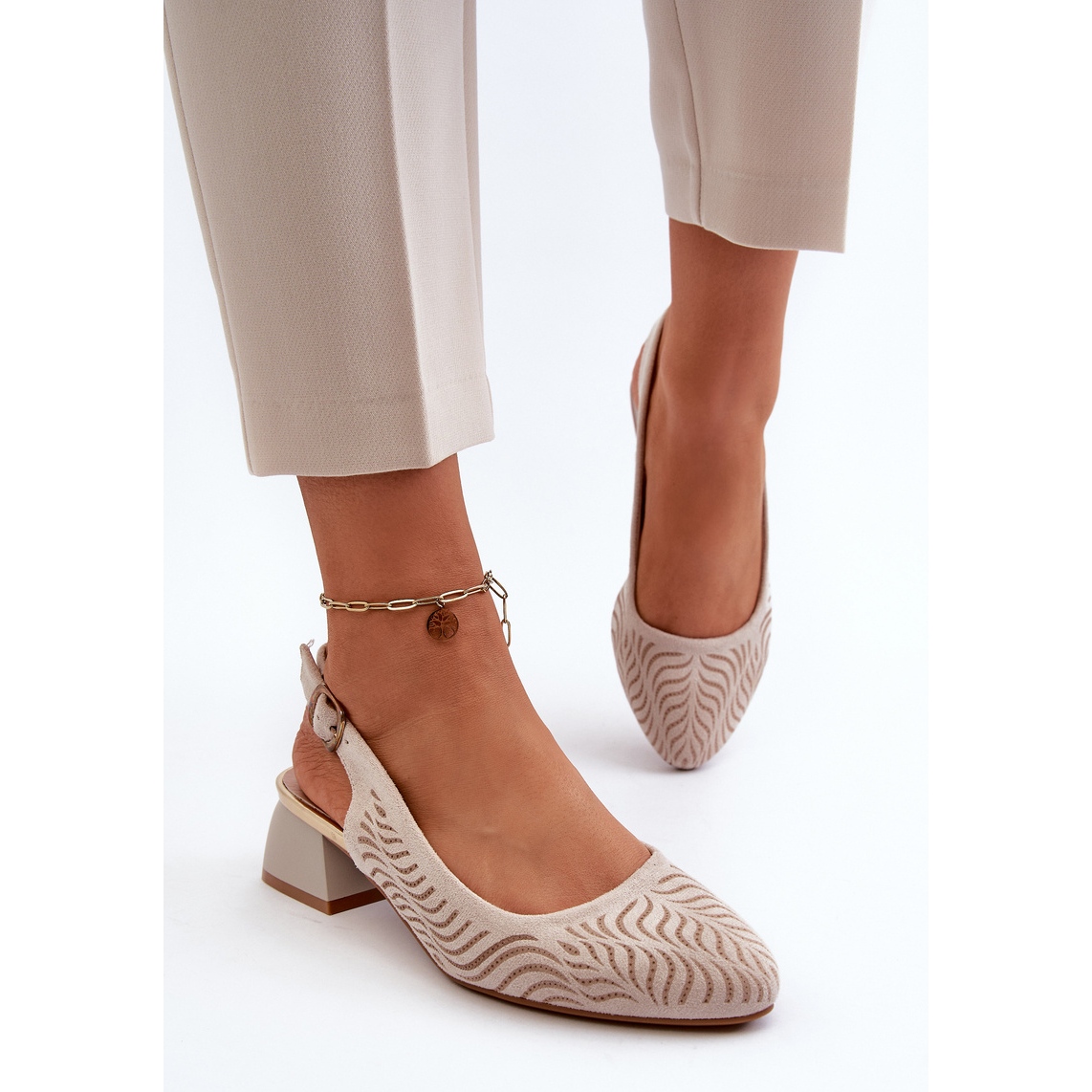 Confectionati din piele intoarsa ecologica bej de cea mai buna calitate, acesti pantofi atrag atentia prin textura lor delicata si nuanta subtila care se potriveste cu usurinta multor stiluri. Modelul este montat pe un toc bloc stabil de 4 cm, care asigura echilibrul perfect intre stil si confortul la purtare. Designul său vă permite să vă mișcați liber pe tot parcursul zilei, fără să vă faceți griji cu privire la oboseala picioarelor.