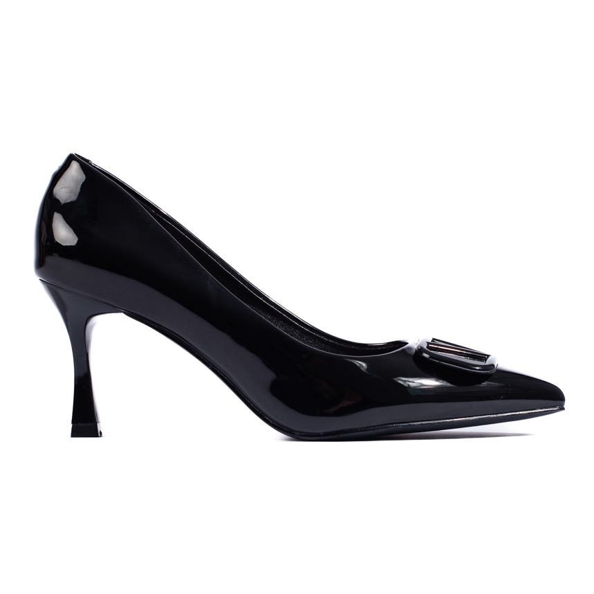 Pompele elegante Vincez sunt o propunere pentru femeile care apreciază clasicii cu un accent subtil. Pielea ecologică lăcuită și un arc delicat pe nas creează un efect elegant, datorită căruia pantofii vor funcționa atât în timpul ceremoniei, cât și la ieșirile de seară. Frumosul cu toc înalt de 7,5 cm subțire frumos silueta, iar nasul rotunjit oferă confort atunci când mergeți.
