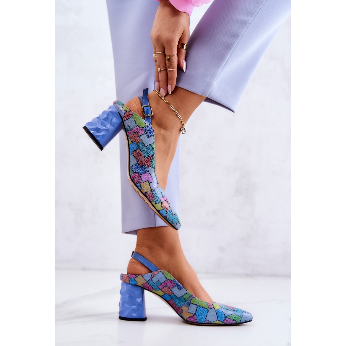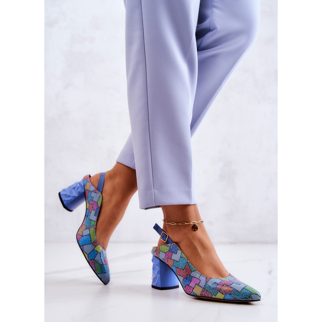 **Pancuri din piele cu toc înalt Maciejka 05427-06 Multicolor albastru**