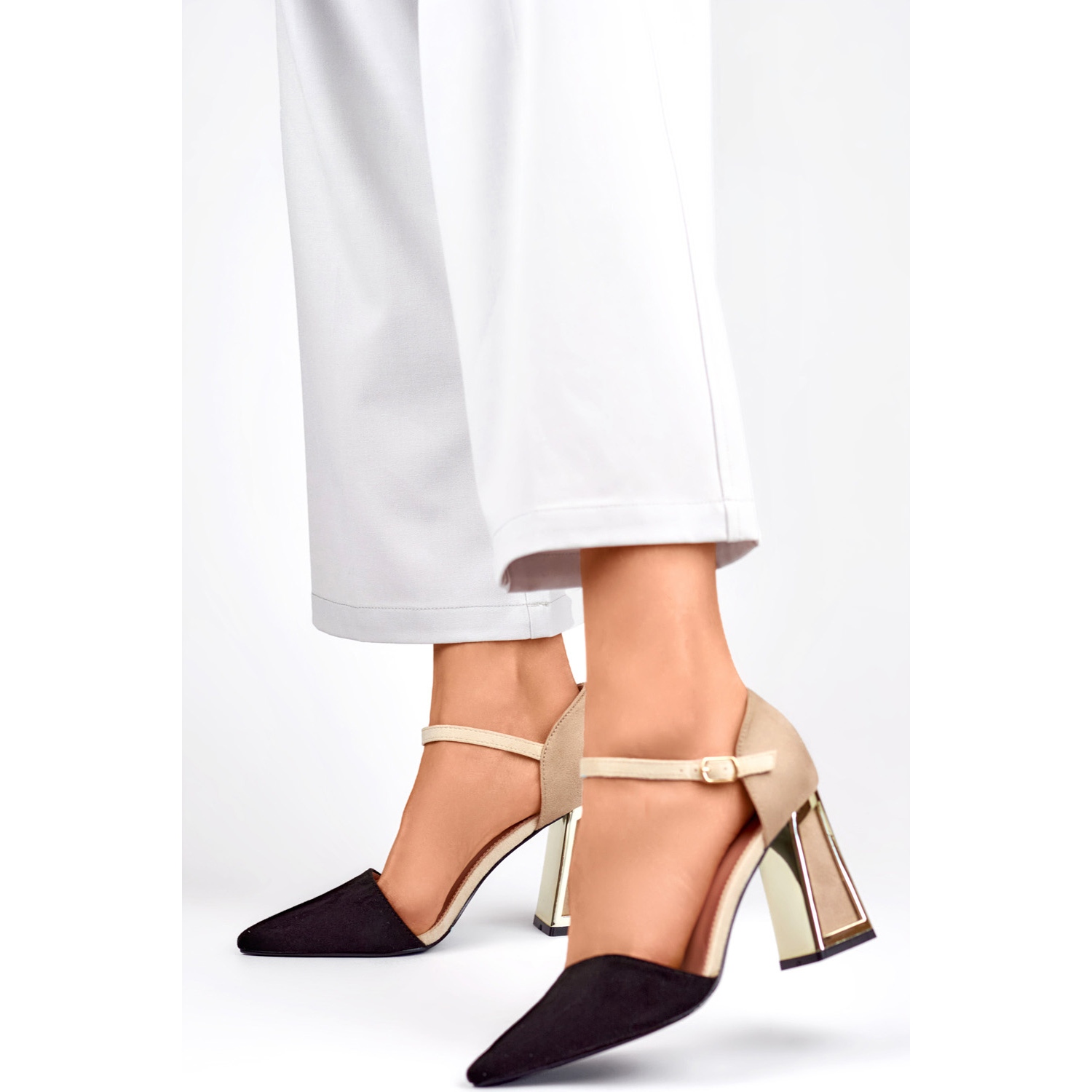 Inna marka Pompi deschisi negri si bej cu toc inalt elegant negru