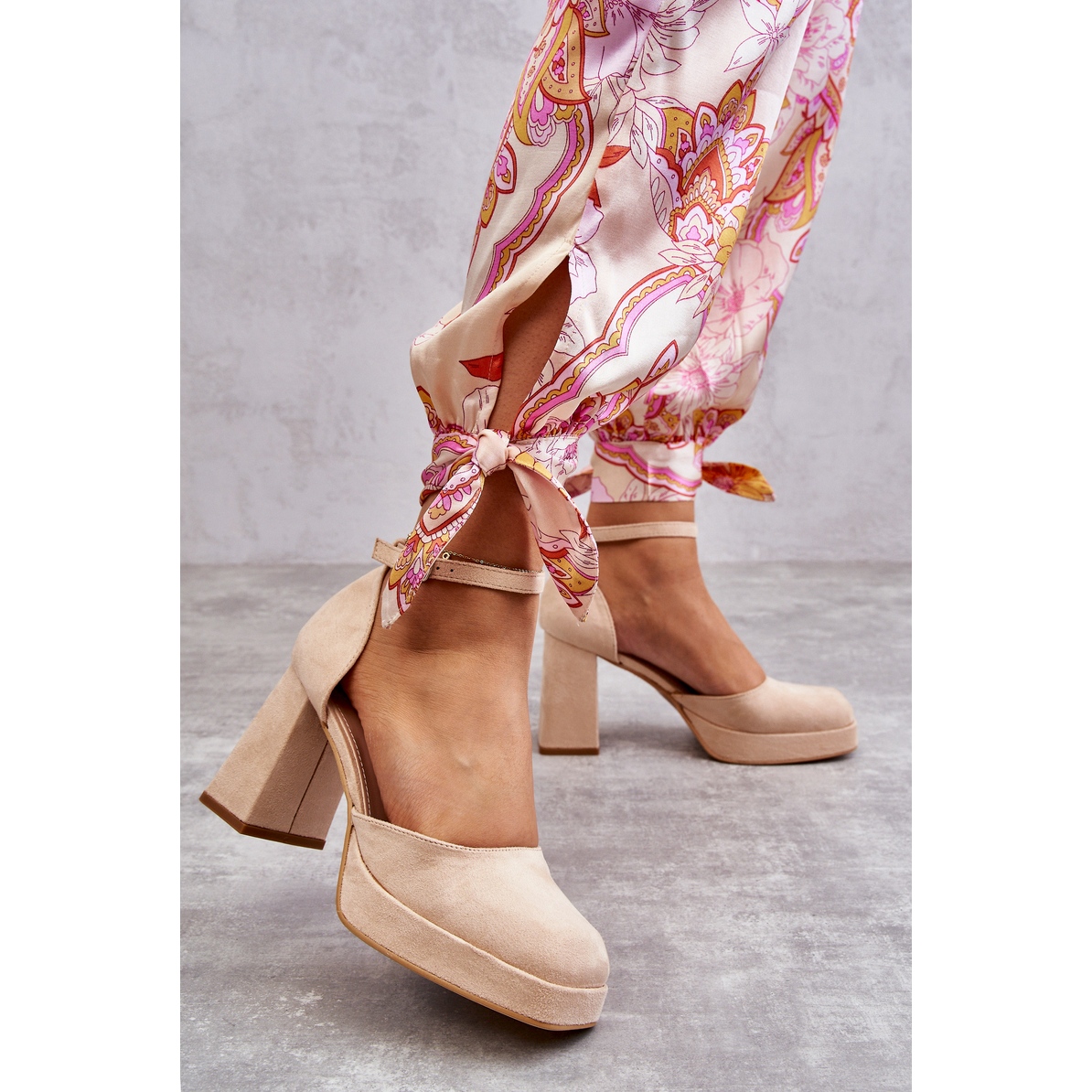 PS2 PS2 Pompi din piele intoarsa pe tocuri groase si platforma bej Diame
