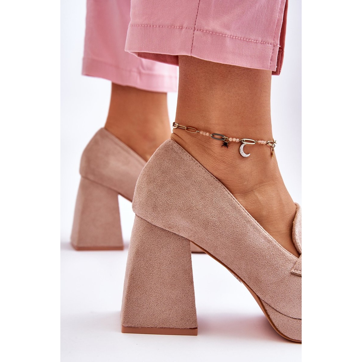 Vinceza Vinceza Pompi din piele intoarsa pe un toc gros si platforma bej Adriel