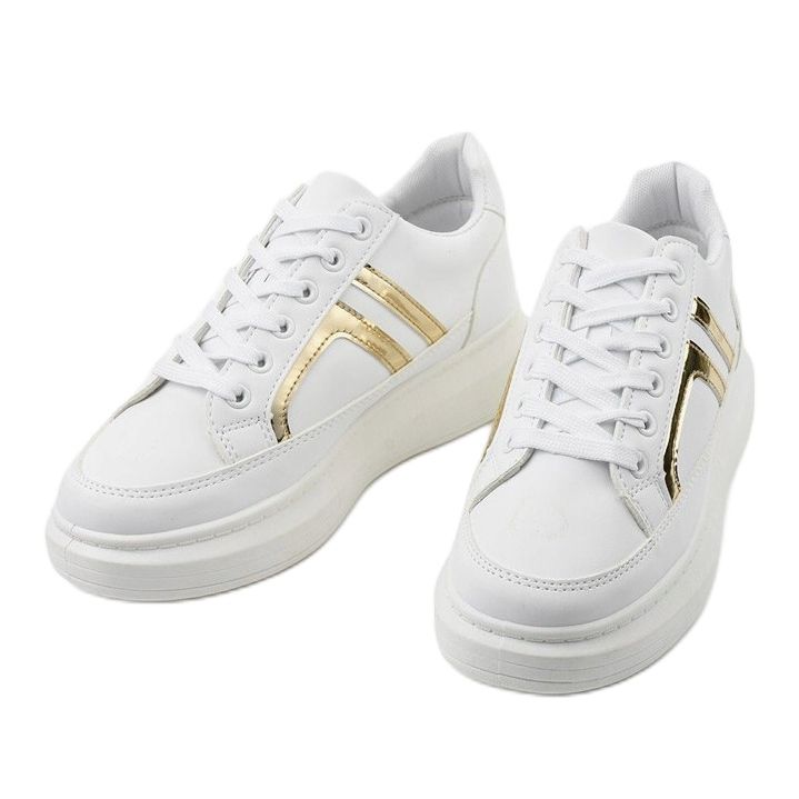 Platforma inalta de 5 cm adauga nu doar cativa centimetri inaltime, ci si lejeritate si dinamism la fiecare pas. Încălțămintea albă cu accente subtile de aur va atrage cu siguranță atenția și vă va permite să vă exprimați stilul individual.