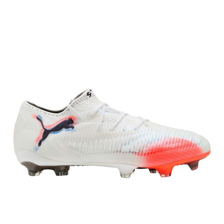 PUMA Future 8 Ultimate Low FG M 108586 01 Pantofii de fotbal sunt alegerea perfectă pentru oricine dorește să combine designul modern cu cea mai mare performanță de pe teren. Tăierea multicoloră în nuanțe de alb și portocaliu va atrage cu siguranță ochiul nu numai pe teren, ci și printre fani.