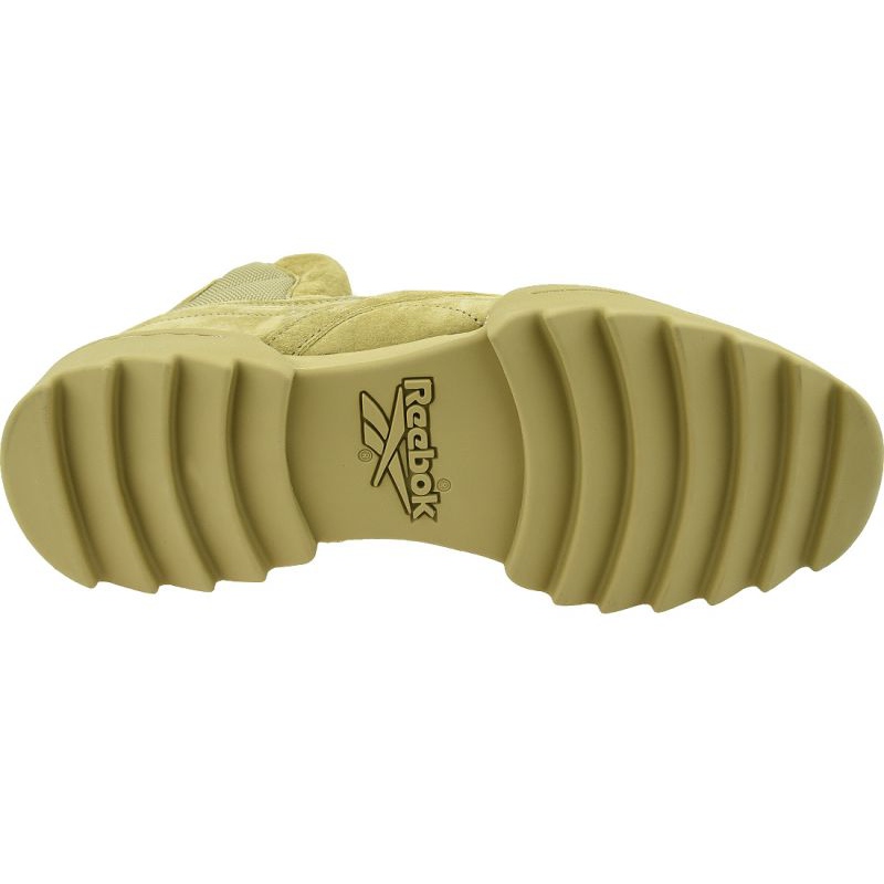 O talpă cu proprietăți de absorbție a șocurilor din material sintetic asigură flexibilitatea și abordarea corespunzătoare a fiecărui pas. Datorită culorii maro universale, pantofii Reebok Exofit Hi Plus Rippleboot M se vor potrivi perfect în multe stiluri - atât casual, cât și sport.