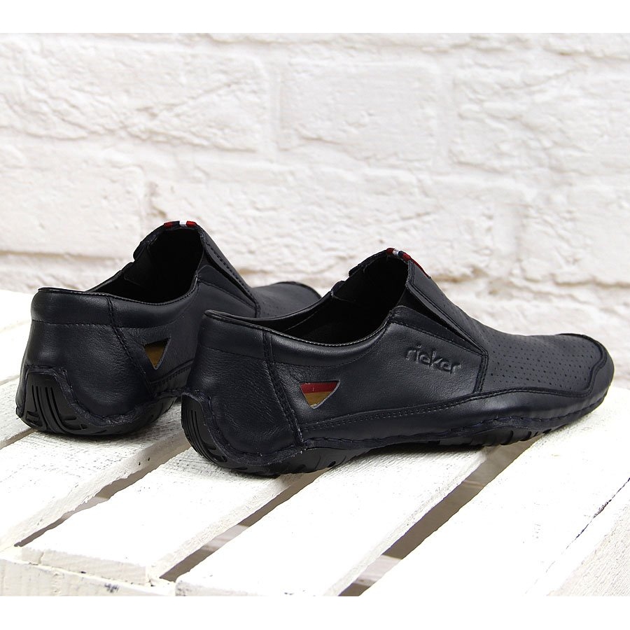 Pantofii din piele pentru bărbați Rieker 06367 bleumarin sunt o alegere excelentă pentru bărbații care apreciază confortul și stilul. Acești pantofi renumiți de la un producător german combină manopera de înaltă calitate cu designul modern. Fabricate din piele naturală, garantează nu numai un aspect elegant, ci și durabilitate și respirabilitate, ceea ce este deosebit de important pentru utilizarea de zi cu zi.