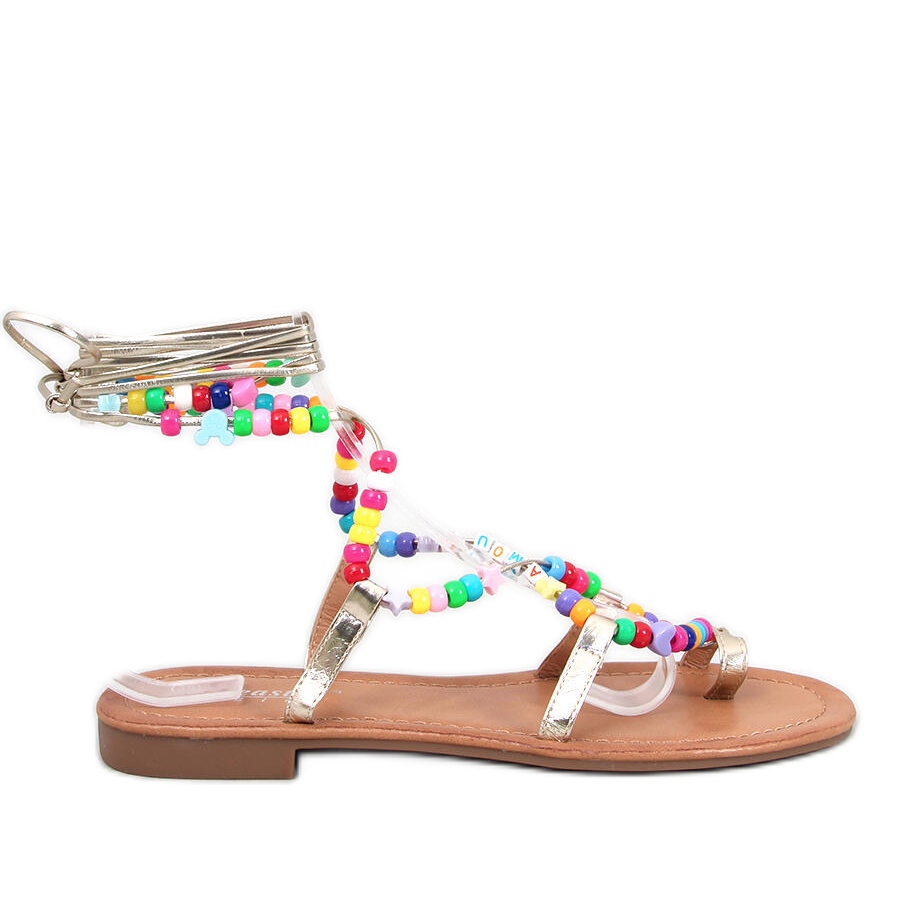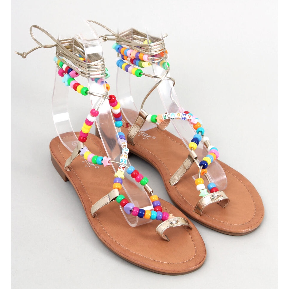 Descoperă sandale unice de damă BM Roman cu margele Megh Gold într-o culoare aurie neobișnuită! Acești pantofi romani atrăgătoare cu talpă plată sunt un must-have în fiecare garderobă de vară.