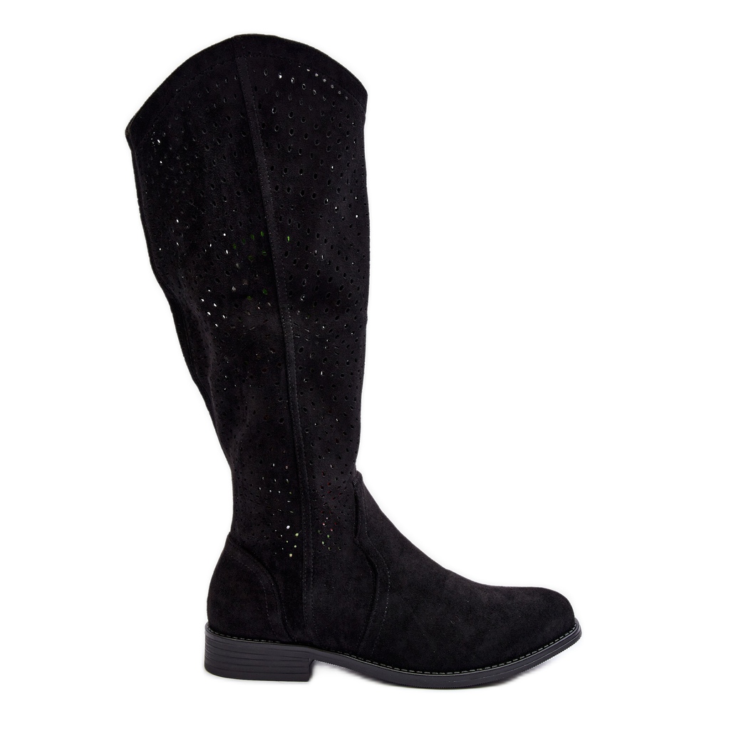 Detalii: S.barski HY66-150 Cizme ajurate cu toc plat, negru