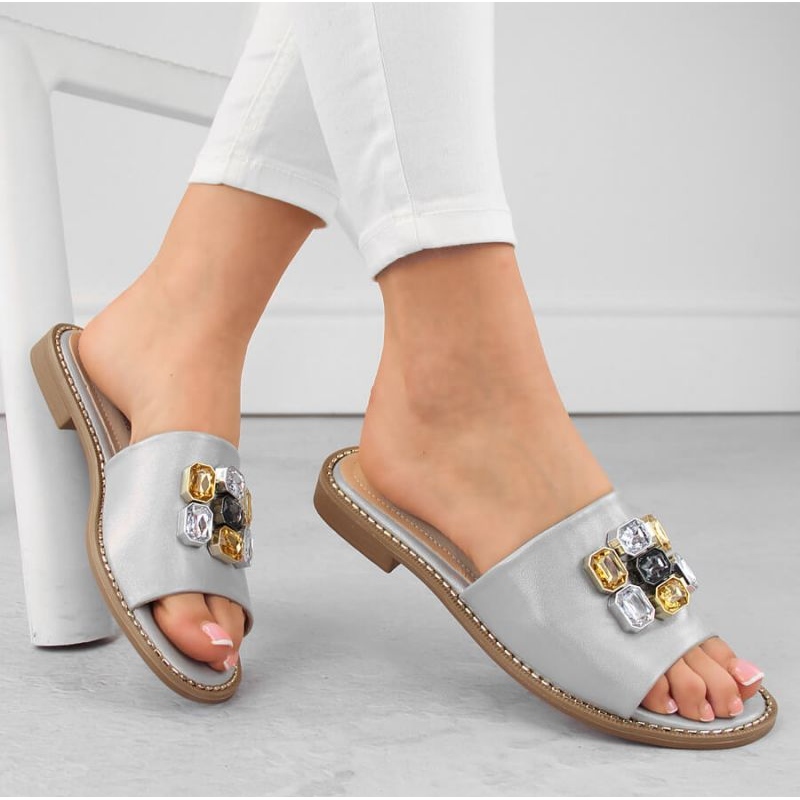 Detalii: S.Barski W OLI262B șlapi argintii cu zirconi