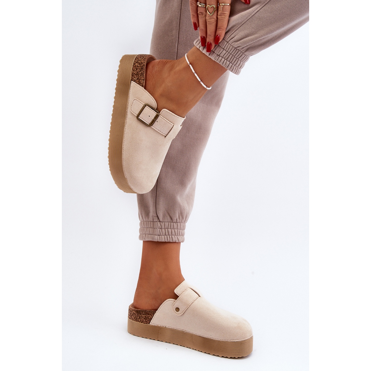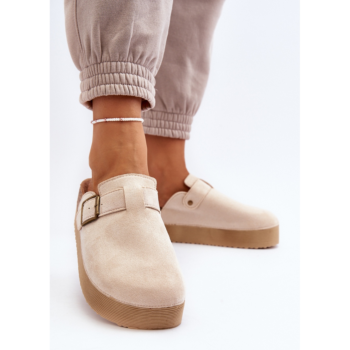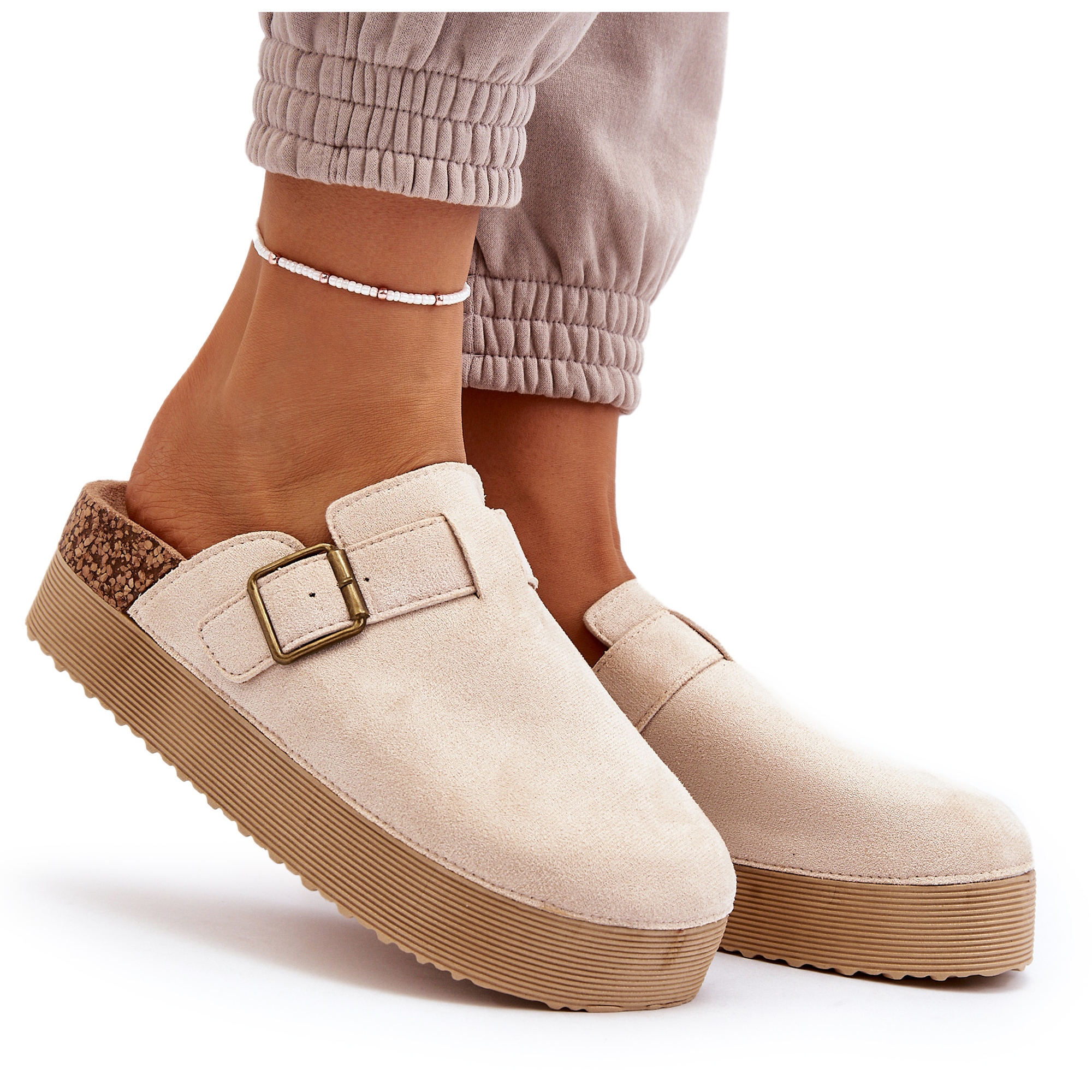 Descoperă confort și stil de neegalat cu saboții de damă pe platformă într-o nuanță de bej deschis de la marca Jorffia. Acești șlapi eleganti sunt confecționați cu grijă din piele de căprioară ecologică de înaltă calitate, care garantează durabilitate și un aspect la modă.