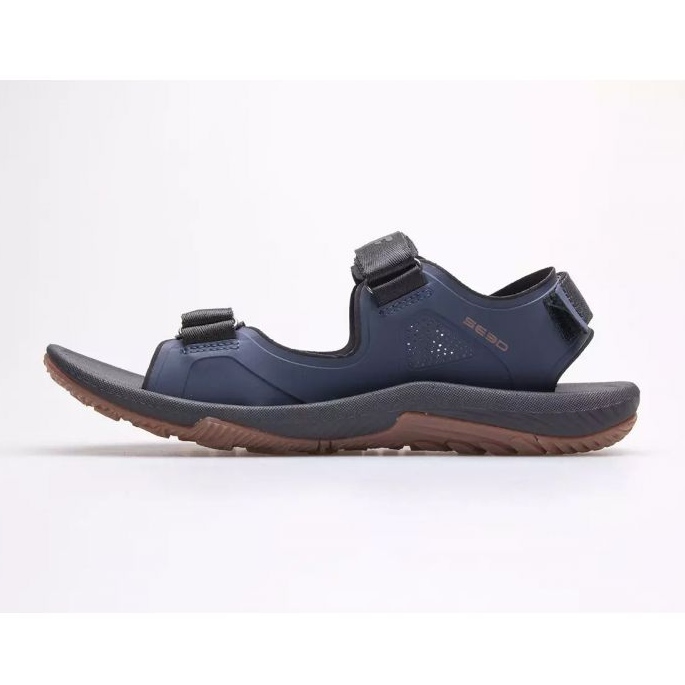 Acest model este echipat cu o fixare convenabilă cu velcro, care permite îmbrăcarea și ajustarea ușoară a potrivirii la picior. Culoarea universală bleumarin cu accente negre face ca aceste sandale să fie ușor de asortat cu o varietate de stiluri de vară, de la casual la sport.