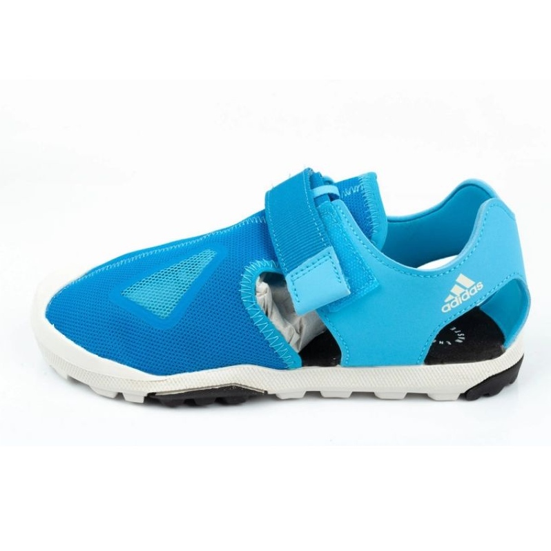 Sandalele Adidas Captain Toey S42670 sunt pantofi sport conceputi special pentru baieti. Sunt realizate din materiale sintetice, dar de înaltă calitate, ceea ce le garantează durabilitatea. Pantofii au căptușeală albastră și sunt joase. Sandalele au o închidere cu velcro reglabilă care face pantofii ușor de pus și de scos. Pantofii au gauri speciale care ajuta la mentinerea confortabila a piciorului copilului. Sandalele au talpa exterioara din cauciuc care ofera o buna aderenta pe sol.