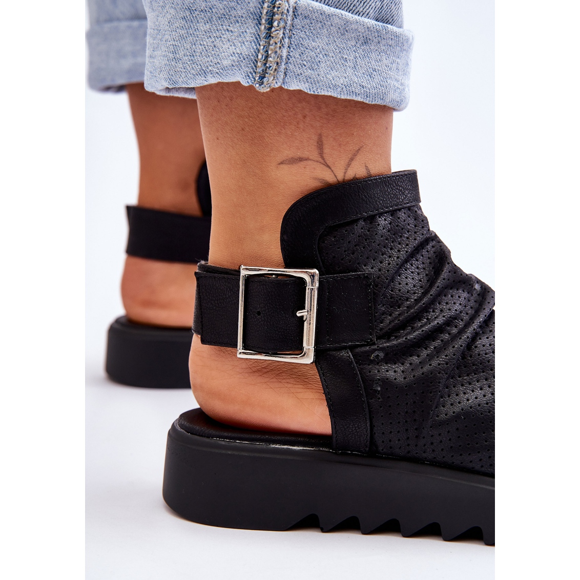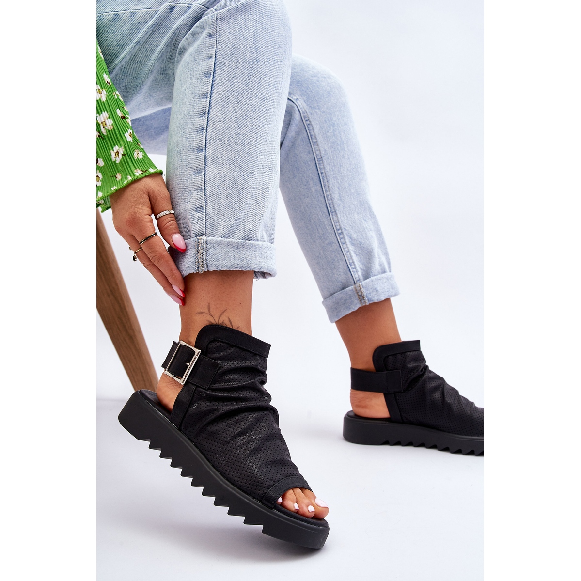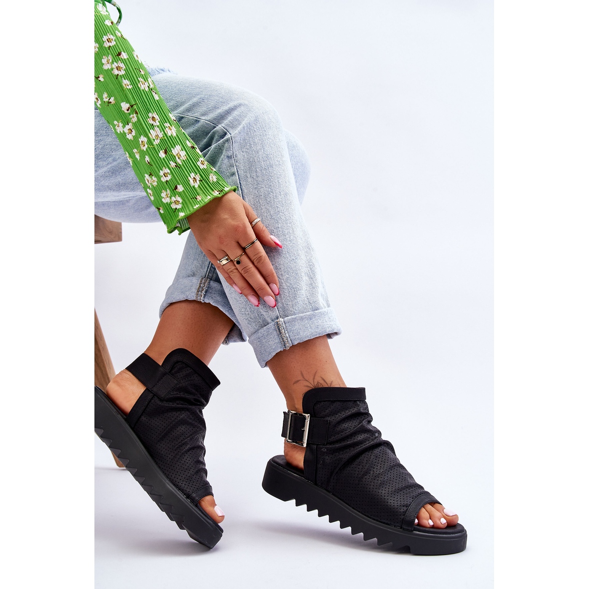O curea reglabilă cu cataramă permite o potrivire perfectă la picior, ceea ce mărește confortul la purtare. Sandalele sunt așezate pe un toc plat înalt de 3,5 cm și o platformă cu șanțuri, care asigură stabilitate și confort la fiecare pas. Branțul din piele ecologică garantează o moliciune și o plăcere extraordinare pentru picioare pe tot parcursul zilei.