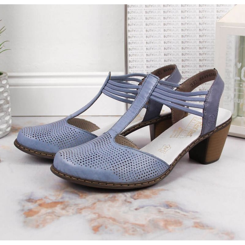 Detalii: Sandale ajurate din piele Rieker W RKR537 albastre albastru