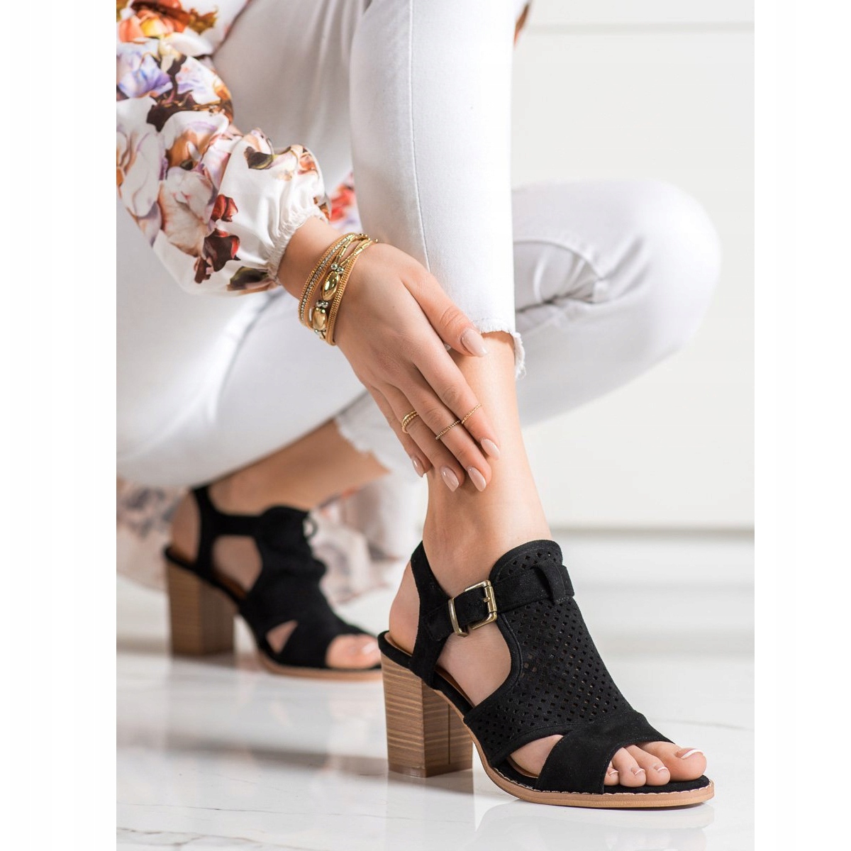 Un toc lat confortabil cu o inaltime de 8 cm asigura stabilitate si confort, astfel chiar si persoanele care nu poarta zilnic pantofi inalti se vor putea bucura de a-i purta toata ziua. Confectionate din piele intoarsa ecologica, sandalele imbina estetica si o abordare moderna a modei. Branțul din piele naturală și materialul interior textil garantează plăcerea utilizării, menținând în același timp o ventilație adecvată în zilele calde.